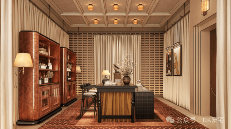私宴红酒区,与中粮长城桑干酒庄合作,将其屡次亮相重大场合的佳酿引入北外滩壹号。为业主提供私密的高端宴请场所,适用于家庭聚会与商务社交。