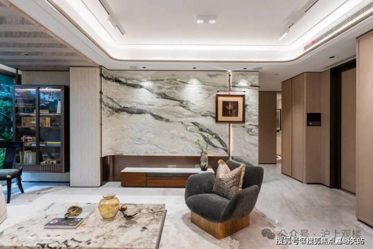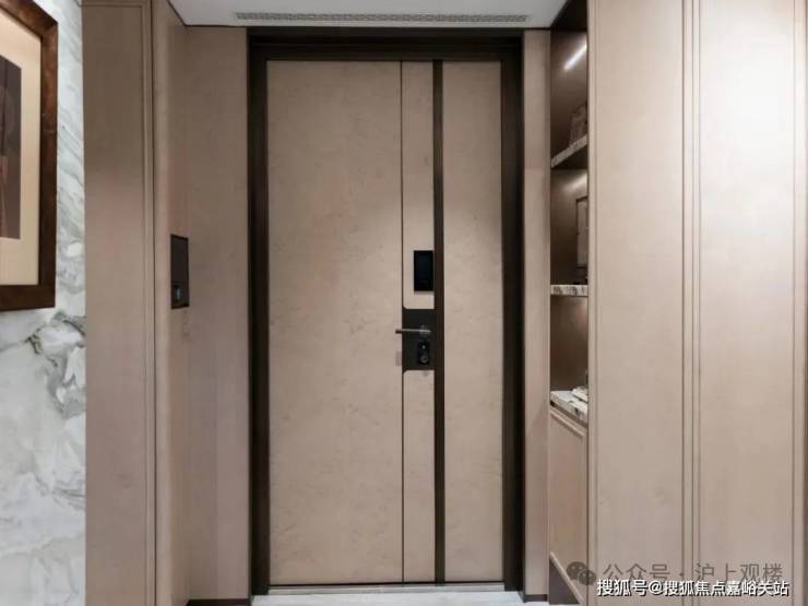 入户做了精致玄关柜,柜门为温润木饰面包裹,壁龛选用奢石映衬,质感非常棒。