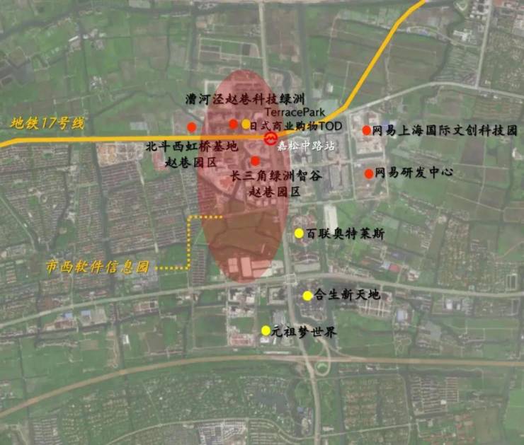 目前市西软件园当前已经有众多科创龙头重点项目入驻!如漕河泾科技绿洲、北斗产业基地、网易国际创投中心等!