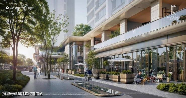 天奕整体抬高约5.4米,由此形成的周长约1100米沿街面,保利没有做成围墙,几乎全规划为邻里商业、社区食堂和口袋公园等。