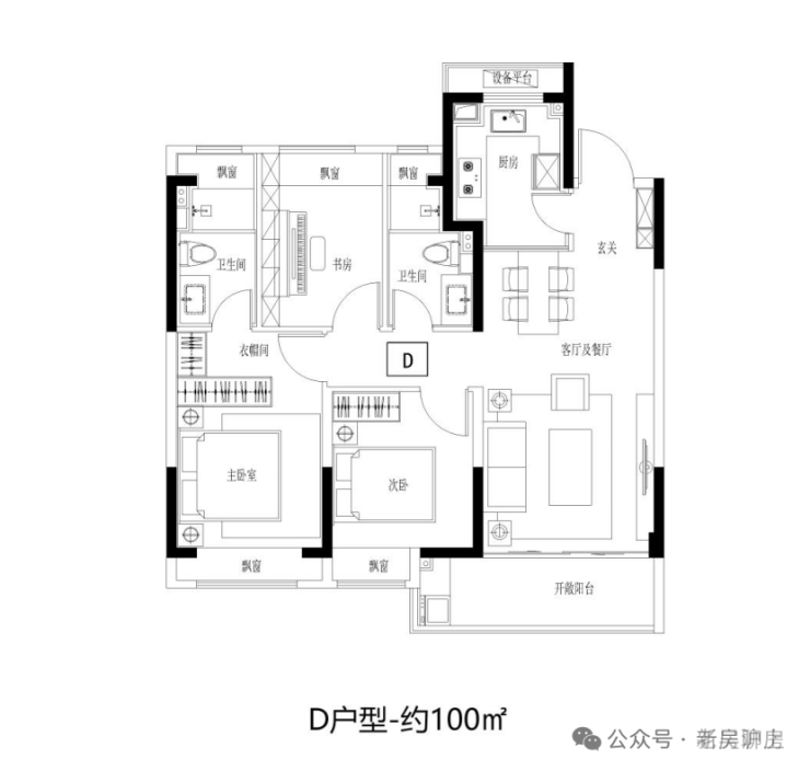 建面约100㎡3房2卫,阳光三房,同等面积更多功能;宽幅南向观景阳台,把居住变成风景;步入式衣帽间,给予生活更多从容。