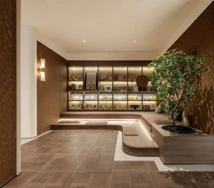 项目围绕「童你成长」,打造「愉阅·雅集·光盒·印记」四大主题空间,成为全龄段用户相处的场景。功能分别为学习盒子、茶吧咖啡会客厅、艺术展示区、园艺花房等,目前学习盒子、茶吧咖啡会客厅两个主题架空层已兑现,实景图如下: