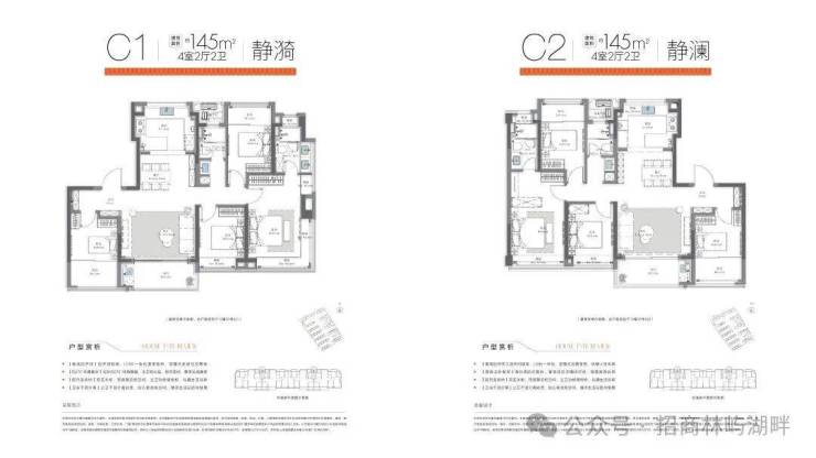 招商·林屿湖畔,高层户型已经公布了,建面约112-145㎡3-4房,全部为南北通透的飞机户型!ps:双击图片可放大查看细节。