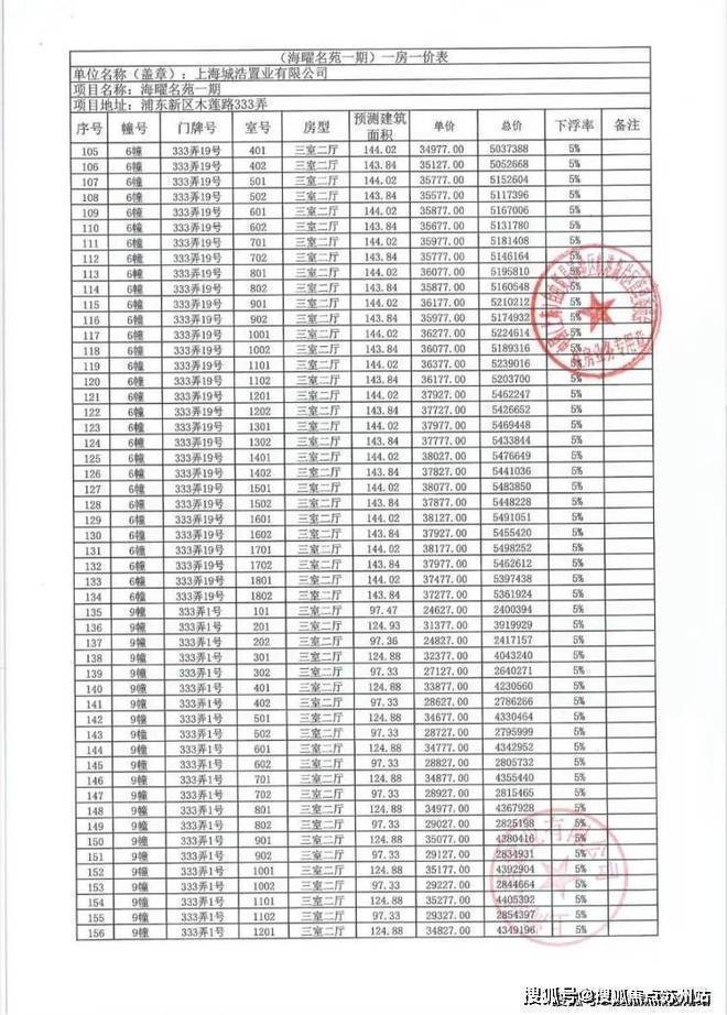 一房一价表