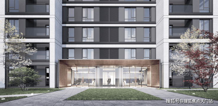 「古北悦公馆」建筑上采用简洁大气的现代风格,大面积玻璃与石材的拼接,外立面采用铝板+玻璃幕墙+局部干挂石材。