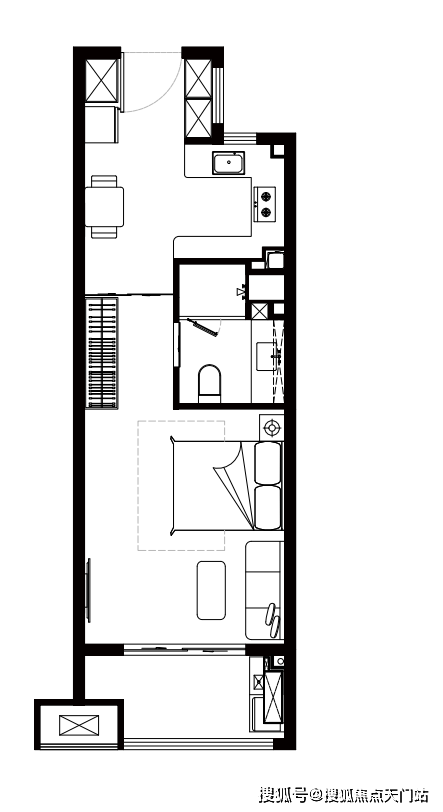 B2户型,建面约50㎡一房一厅一卫