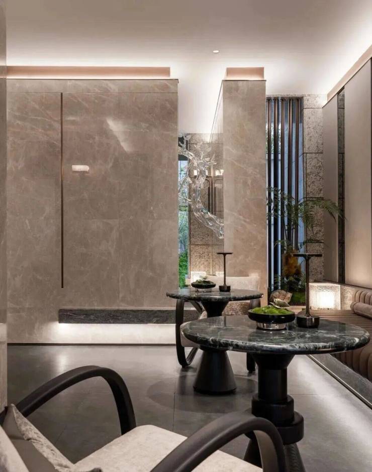 每一块石材的肌理与色泽,都在呼应窗外中央绿地的生机,还原自然的美貌。