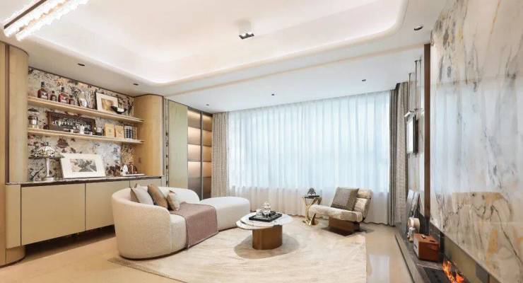 室内同样体现“高浓度奢石”,建面约184㎡户型地面采用保加利亚黑和奥特曼米黄石材,辅以无缝水刀拼花工艺。每一步细节,都在宣告着项目的长期价值。