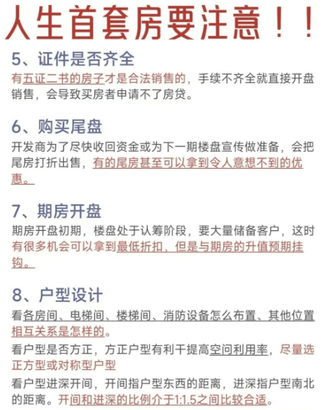 (5)得房率:购房者实际使用的套内面积与房屋建筑面积的比例,直接影响居住体验。