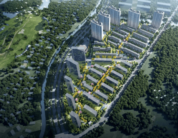 地块位于嘉定别墅云集的区域,颖奕高尔夫公园边,比邻万科西郊都会,总用地面积92673㎡