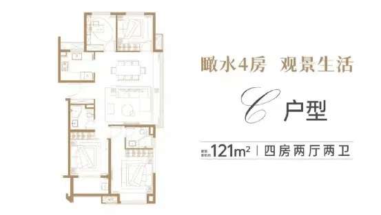 建面约121㎡c户型图,4房2厅2卫