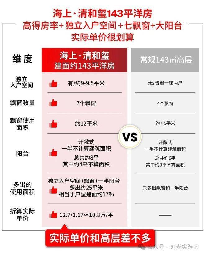值得一提,相比高层,洋房本就得房率高,海上·清和玺更是凭借“独立入户空间+七飘窗+大阳台”,实得率拉满!