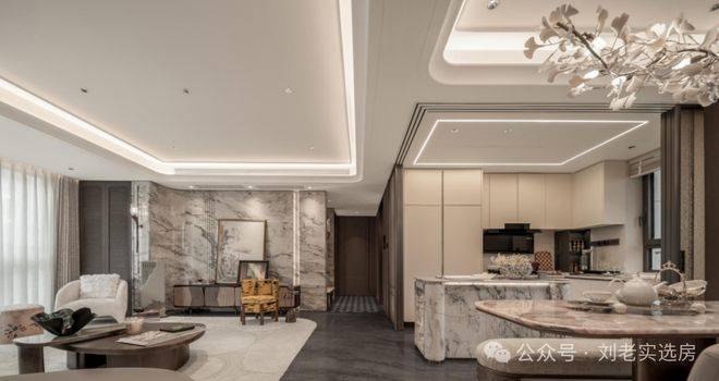下沉式庭院则以土耳其进口老虎玉为基底,经匠人60天手工细细打磨;树龄超60年的福木「紫薇」,跨越万水千山从远方寻得,让每一次归家,都成为穿越艺术与时光之旅。