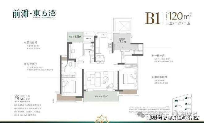 这3个户型三开间朝南、室内“朝南2飘窗+1阳台”、再加上“2卫”、“动静分离”的设计,不管是采光、视野、通风、私密性,还是实用性都十分出色.