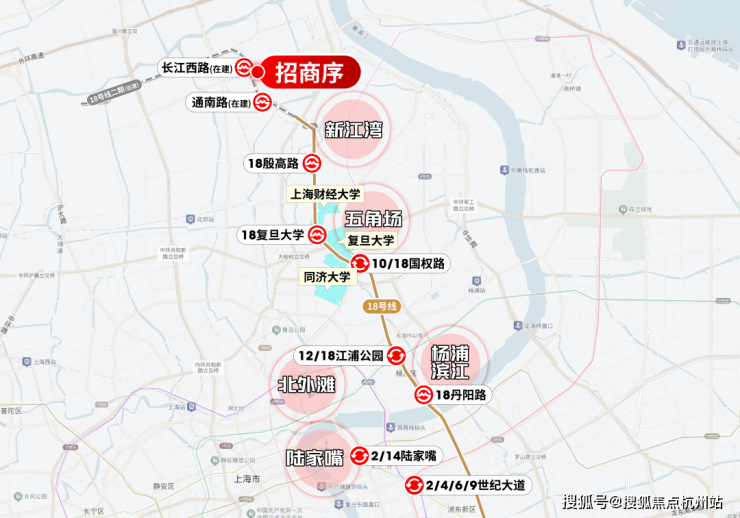 1、板块价值:项目占位淞南板块,作为中环沿线10年断供的板块,地理位置优越,背靠杨浦、咫尺江湾,不仅承接了五角场、北外滩的外溢红利,更以18号线长江西路站(在建中,距离项目直线距离仅约200米)构建「主城生活圈」,这种「板块优势+地铁TOD」的地段配置,在市场波动中始终是资产安全垫;