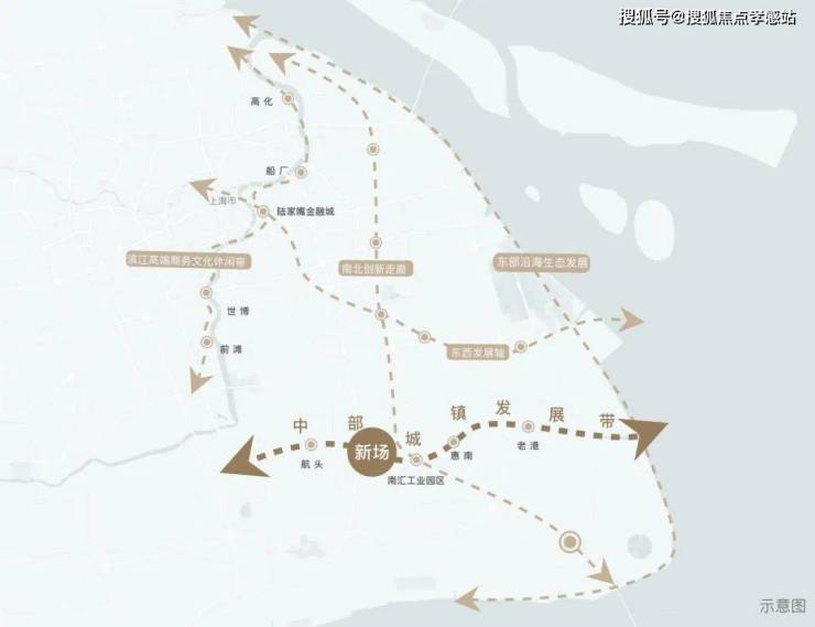 新场板块处于贯穿浦东南北的创新产业密集带,同时还位于东西延伸的中城发展带上,是“十字”黄金腰带交汇处。