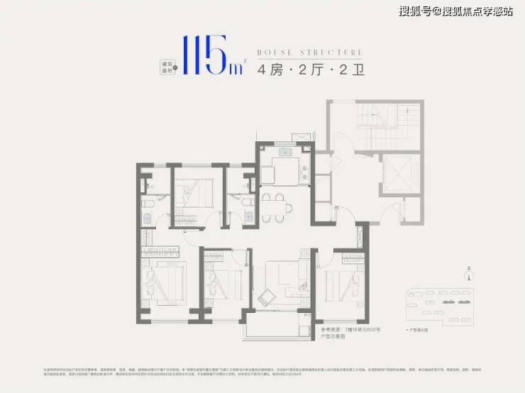 建面约115㎡4房2厅2卫,做到了四开间朝南+全卧室带飘窗+主卧套房设计,一步到位的大四房户型。