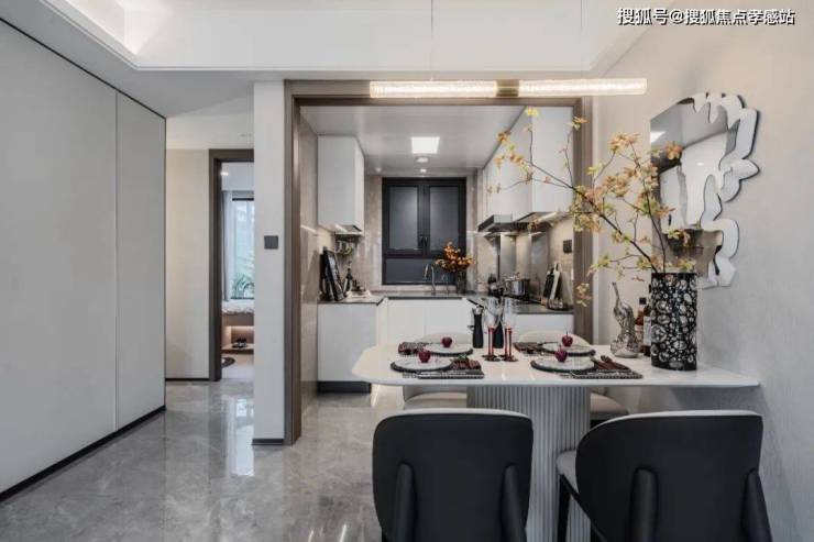 客餐厅的颜值超高,地砖、墙布都在交付标准里,整体风格更为统一,将好看+好用发挥到了极致!