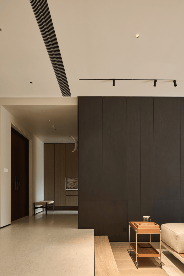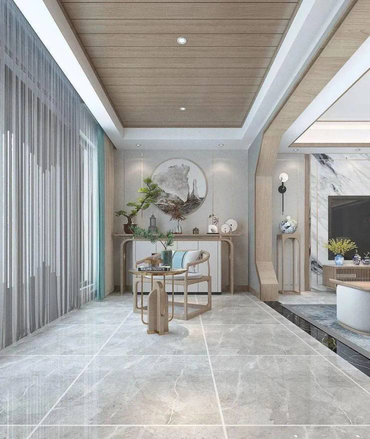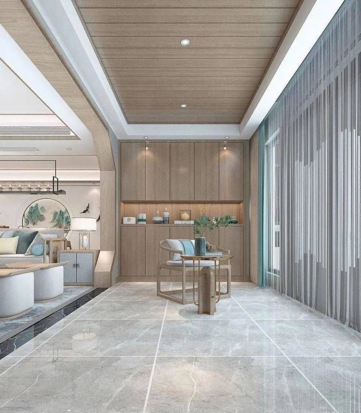 地面延续酒店式落客区海棠纹拼花镶钻,铁打纹工艺,其间还有老石板,青石板,中国黑老石皮,柏坡黄的石皮等原石原面铺装,老石皮从大料里取出,数量少而贵,由此也可看出保利·永兴里在别墅打造上是真舍得,也是真高级。