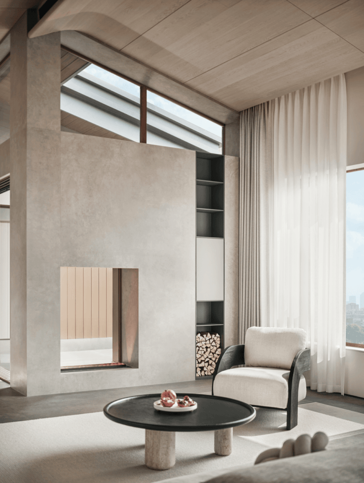 三层:主卧+ 书房组成豪华套房,将近40㎡,一层一户,将主人空间需要的尺度感与私密性拉满,同时外接约 11.35㎡露台,将城市风景与星空纳入日常。