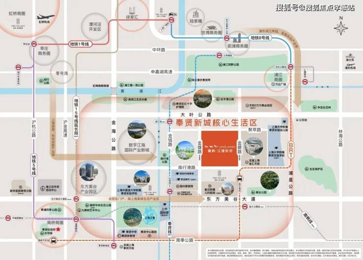 一、滨江南,近市区。金汇离人民广场直线距离仅约28km,对于工作在徐汇、闵行,或者浦东中环附近的人群,通勤便捷,自驾可通过浦星公路接入南北高架路。