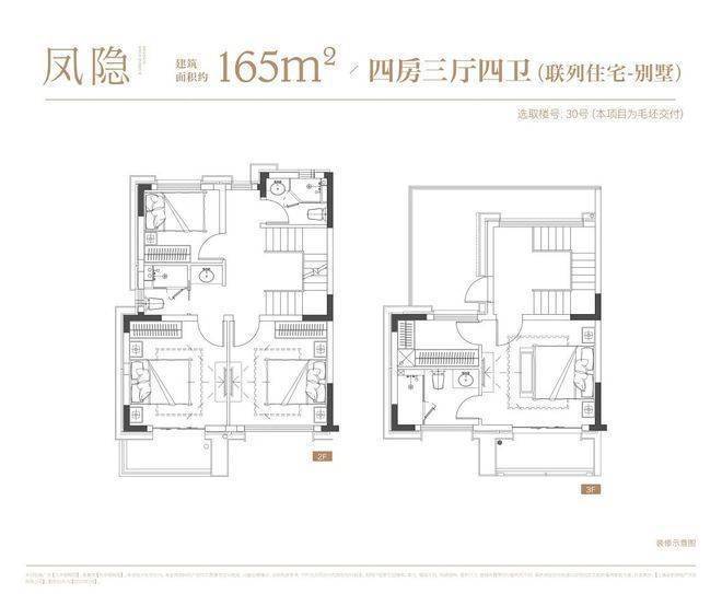 叠墅:叠墅一共四层,分为上/下叠,上叠建筑面积约139㎡,下叠建筑面积约142㎡。