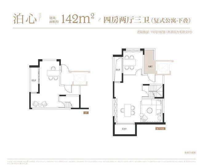 下叠建面约142㎡的四房两厅三卫,大华梧桐院售楼处电话☎:400-8787-740【预约☎】则附带大面积地下空间,可以根据兴趣爱好进行空间布局。