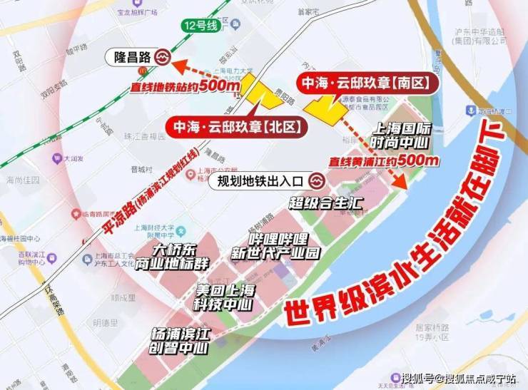 中海·云邸玖章距离地铁12号线隆昌路站直线约500米,步行可达,这在杨浦滨江一众不靠轨交的项目中是非常难得的。进站后4站可达北外滩,7站陆家嘴,8站通达人广。