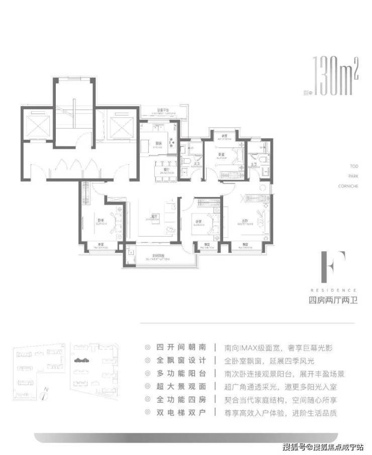 约130㎡四房双套间:独立家政间+中西双厨设计,四开间朝南引入全天候阳光,270°转角阳台俯瞰双公园景观。