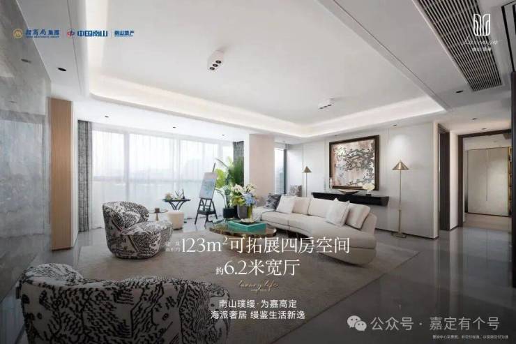 南山璞缦最近火爆热销的 约123㎡户型 ,之所以能被称为“高能”,正是因为它超越了传统户型的物理限制,在空间效能上做了一场精准的革新,为后期改造预留了巨大潜力: 约12.5米南向超大面宽搭配流畅动线、横厅尺度阔达约6.2米,既可作奢阔大三房,也可灵活改造为舒适四房,而总价仅约500万起, 精准契合房票客户的预算与需求。