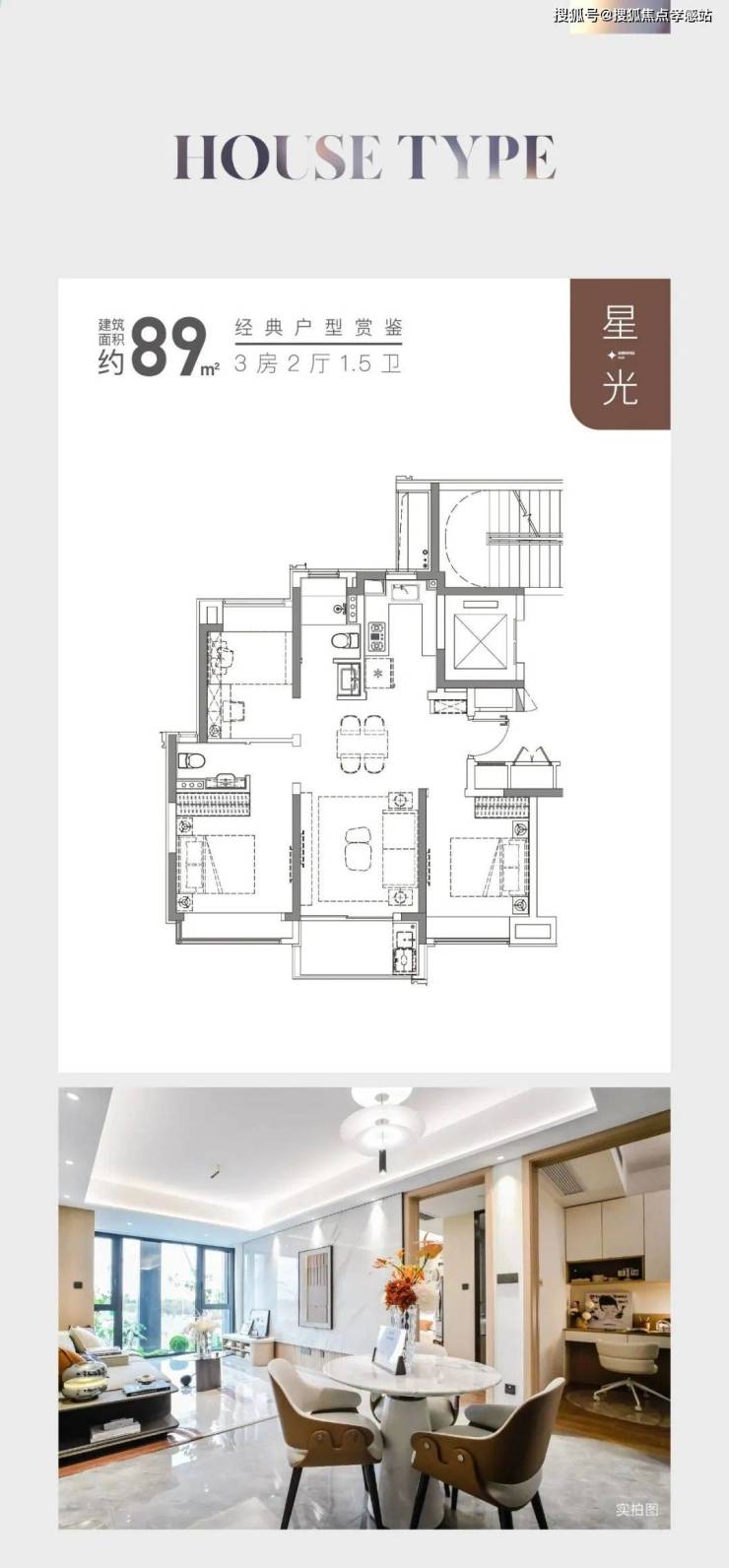 建面约89㎡户型,三开间朝南,并且全卧室带飘窗,室内的采光、视野以及空间延展性都非常出色。