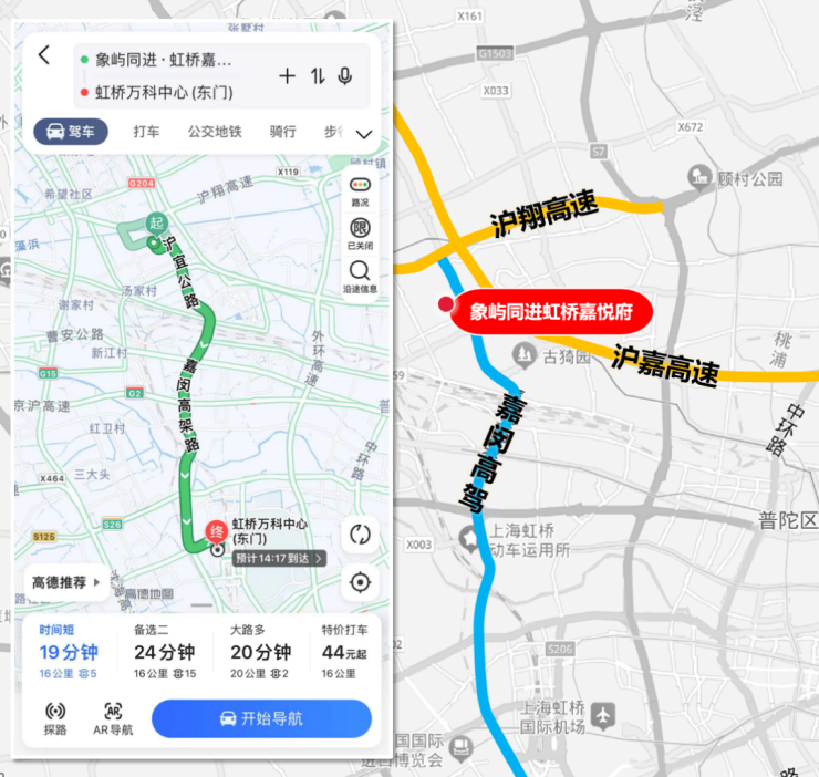 沿嘉闵高架向南,可以便捷通勤大虹桥。
