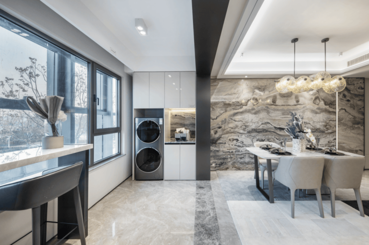 除了高标准装修交付之外,项目还是一个超低能耗住区!通过调整窗墙比例,提升采光效果;利用绿色环保材料,实现节能创新;还有新风回收装置;变频变压 VVVF 节能电梯;天氟地水两联供系统等,在满足居住舒适度的同时,还能节能环保!