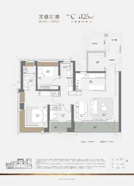 而建面约125㎡C户型,设计充分彰显新规产品的空间优势,实际得房率高达约86%,远超市场普遍标准。