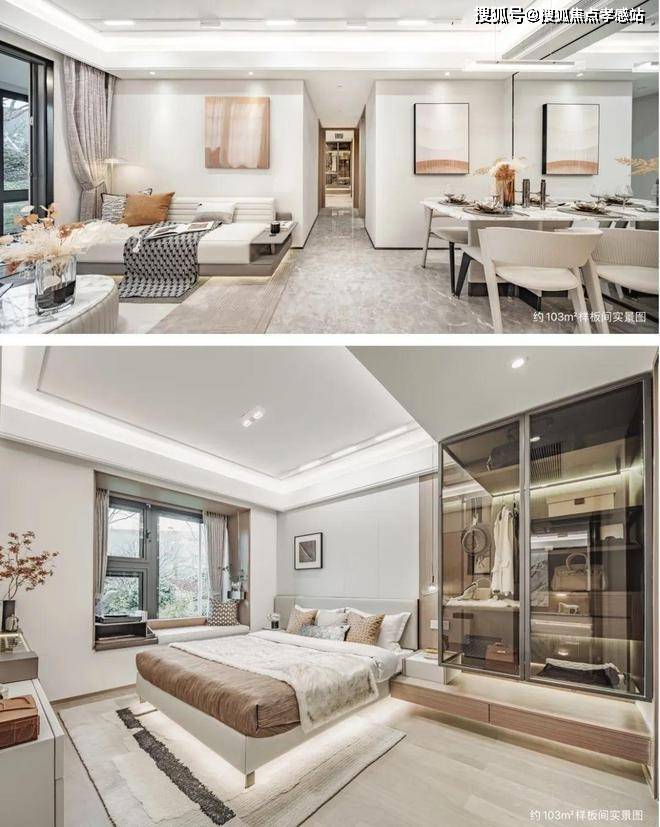 3、从住宅建筑与产品细节来看,光合跃城主推建面约106㎡3房,无连廊,高得房率,10万+豪宅级装标,单价仅约5.46万/㎡起!质价比断层式领先~