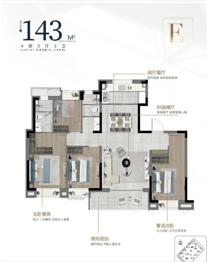 「中建玖海云天」售楼处电话:400-8855-420【☎️售楼处认证】✨✨✨建筑面积约133㎡/143㎡四房两厅两卫,大开间,在满足空间感的基础上,增加户型的功能性,承载生活高舒适度;其中建筑面积约133㎡的四叶草户型,主卧套房设计,三代同堂各有私密天地;南向观景阳台,饱览阳光美景,双卫设计,提供更多私密空间与生活便利。