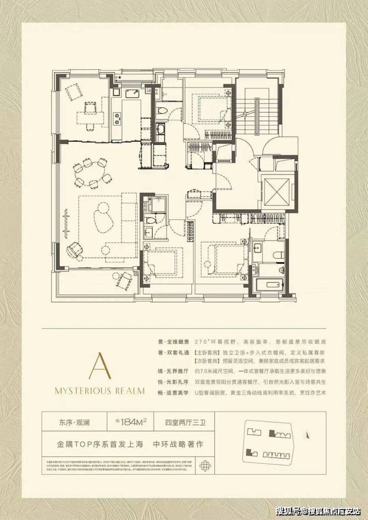 184㎡户型将空间感做到极致,约7.5米超大面宽客厅,带来270°环幕视野,绿地景观一览无余。双卧室套房设计,照顾了家庭成员的隐私性诉求。
