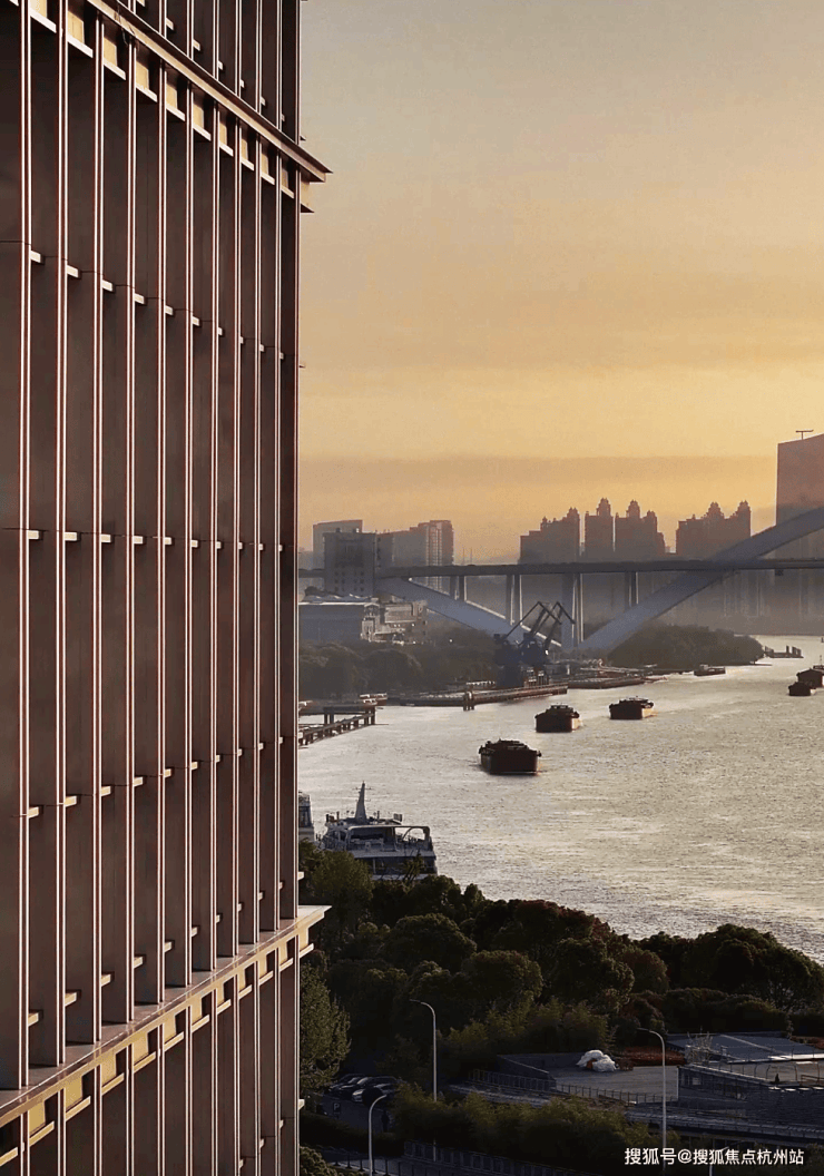 项目外立面设计了 上海首例“开放式铝板设计” ,打造 黄浦江畔地标新名片 !结构外露的模式不仅赋予建筑本身十字框架般的雕塑体形,大框套小框的模式,反衬江景和光线,呈现出 浓烈的建筑美学造诣 ~