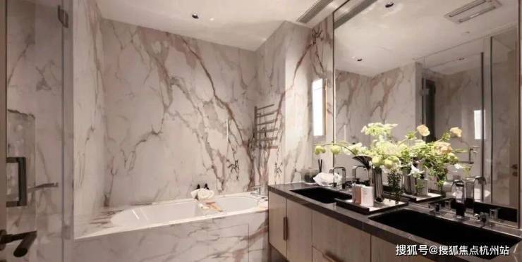 选材来看,各种奢侈品级石材随处可见,比如与 北京钓鱼台国宾馆同款的意大利进口鱼肚白石材 ,被誉为 “世界上最贵的石材之一” 。