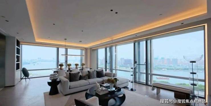 直线距离黄浦江仅约80米 ,与汤臣一品和中粮海景壹号等顶豪住区享有相同的视野与距离,同频一线黄浦江景,更是做到了与传统江景豪宅不同的 低密、超高绿化率 。