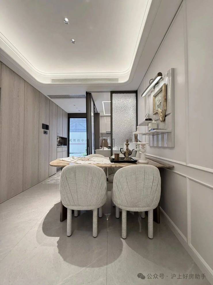 除此之外,最让我惊艳的还是这个能放下6-8人餐桌的宽绰厨房,以及这个尺度感惊人的客厅 。