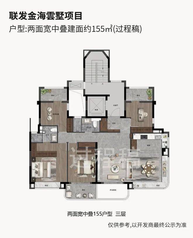 第一,项目同样是1.5容积率的新房,所以大概率也会有叠墅产品存在,所以即使整盘的均价在约7.5万左右,但高层的价格不会那么高。