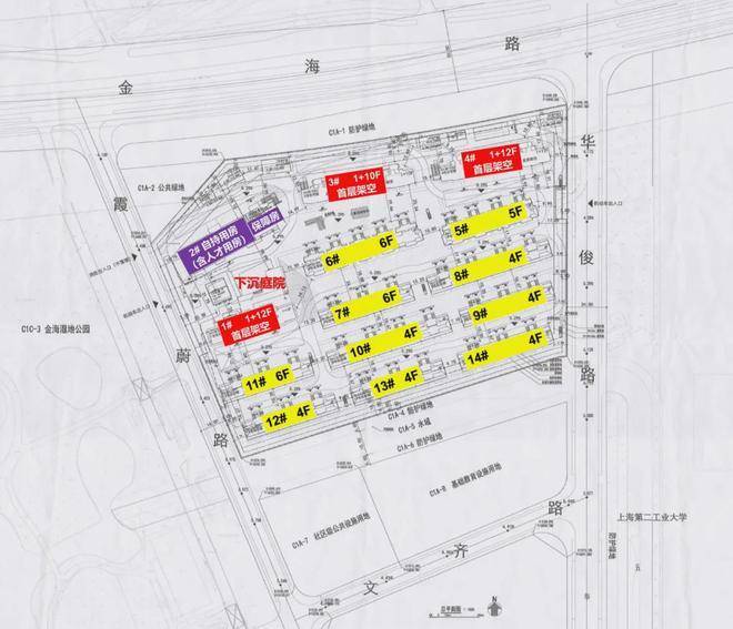 对比来看,新地块优势在于距离地铁站更近,直线距9号线顾唐路站、9号线及12号线金海路站约900米,而且地块面宽更大,户型设计可优化空间多;挑战则是北侧即为金海高架,需投入隔音降噪成本,且涵盖4000㎡商服用地。