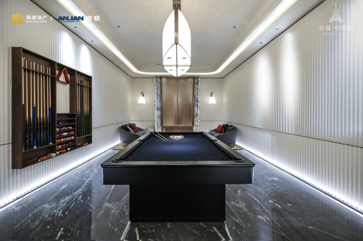 会所还配 备了2个棋 牌室、1个撞球室、1个影音室,满足业主日常的娱乐生活。说实话,这个真的是得会所够大才能设置的空间,为业主带来更多的休闲方式。