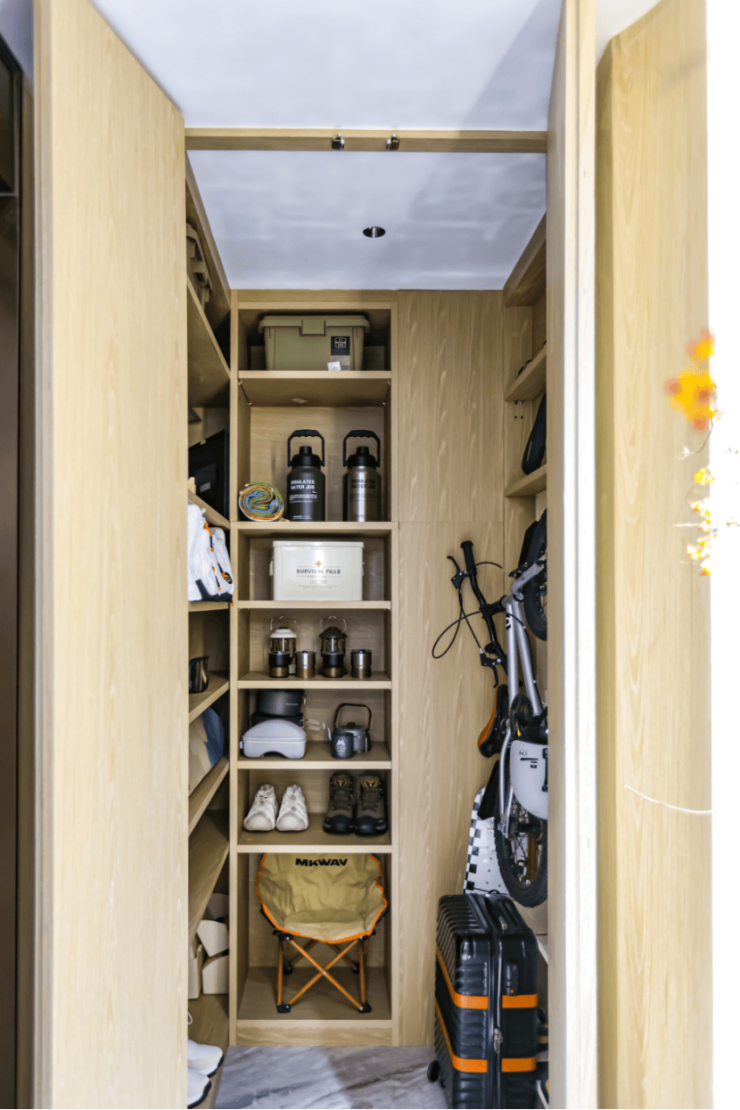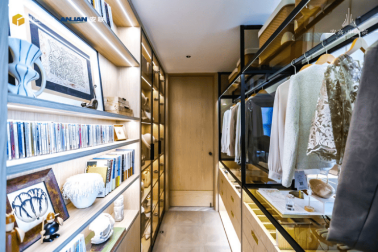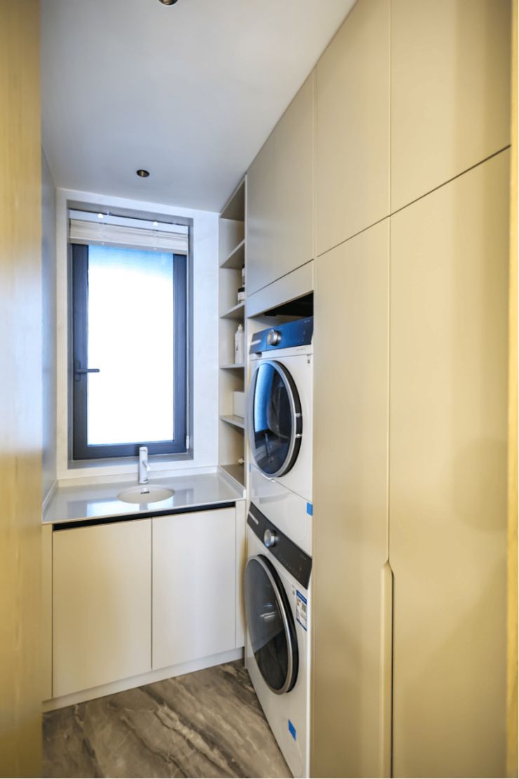 该户型的收纳也做到丰富且隐蔽,家政间、储藏室、衣帽间空间都超大,让业主的日常生活更加井井有条。