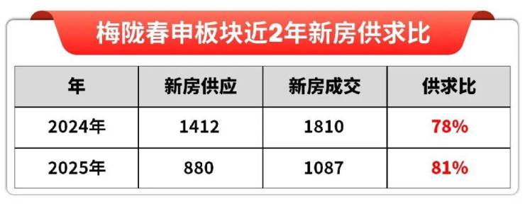 据网上房地产数据显示,去年和今年,梅陇新房市场的供求比都在80%左右,呈现的是强烈供不应求的态势!