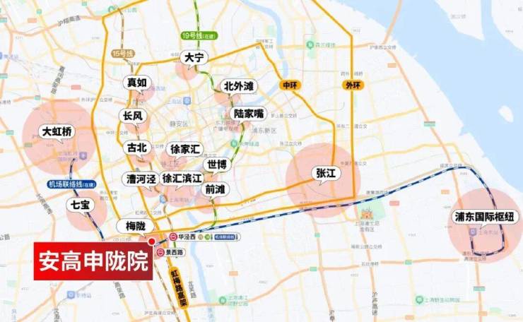你看梅陇,15号线(已通车)、19号线(在建中)、机场联络线(已经通车)、 23号线(在建中)4轨交汇。再加上虹梅路高架直插中环外环,南侧银都路越江隧道,可直通“浦东金色中环”。