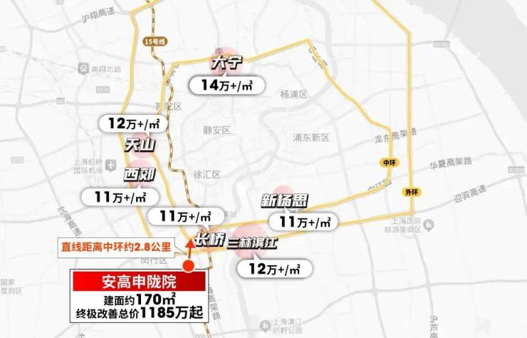 安高申陇院直线距离中环仅2.8公里,同维度的新房起码都是11万朝上的单价,1200万左右预算基本都只能买百平左右3房,说实现真的谈不上改善。
