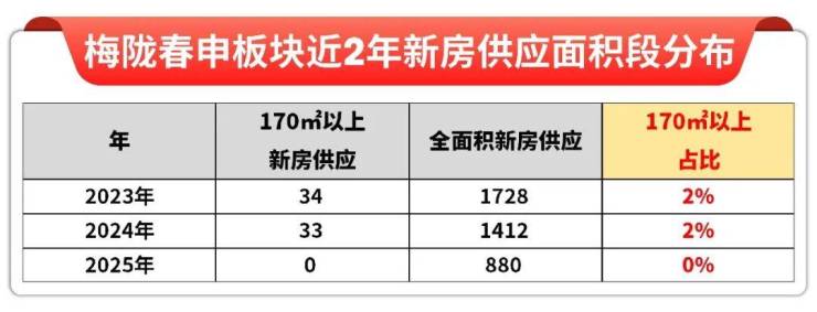 据网上房地产数据显示,前年和去年170㎡以上的新房供应占比仅约2%,今年更是一套都没有,稀缺属性可见一斑!