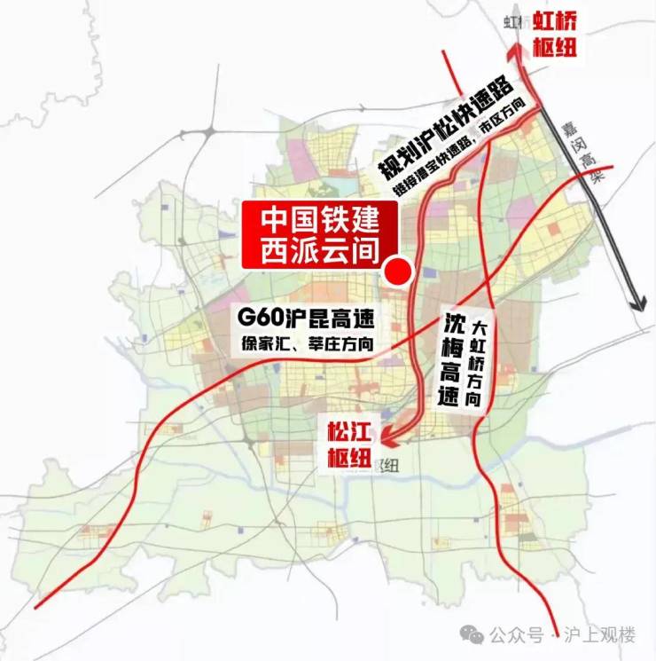 沪松快速路+嘉闵高架直通虹桥机场。